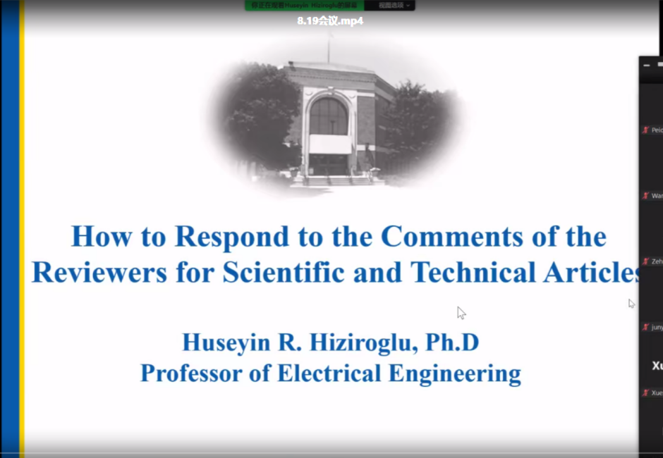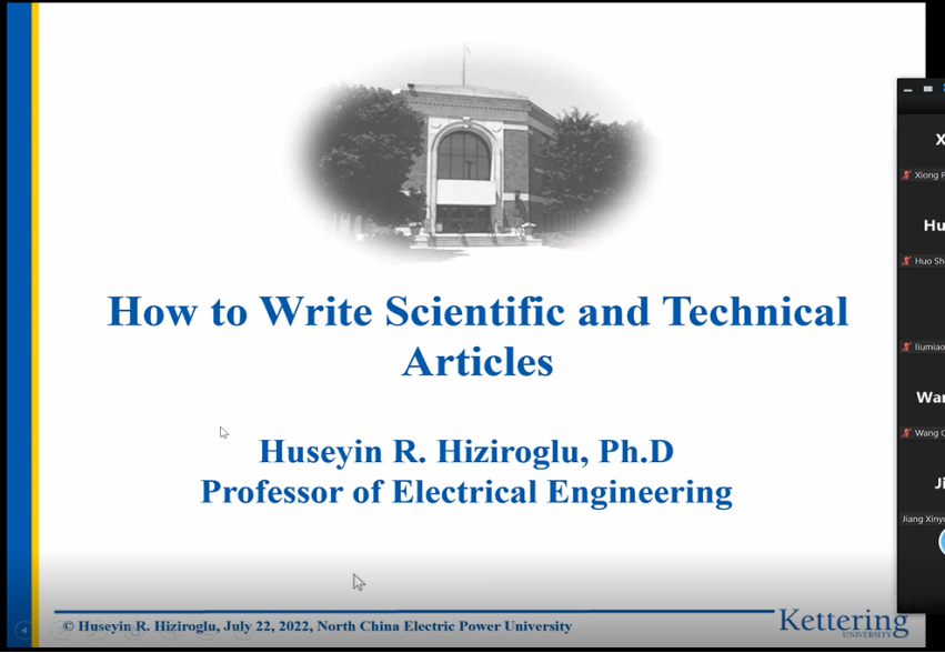 邀请了IEEE Transactions on Dielectrics and Electrical Insulation主编、美国Kettering大学Huseyin R. Hiziroglu教授做成果提炼、论文写作的系列专题讲座。讲座由91成人