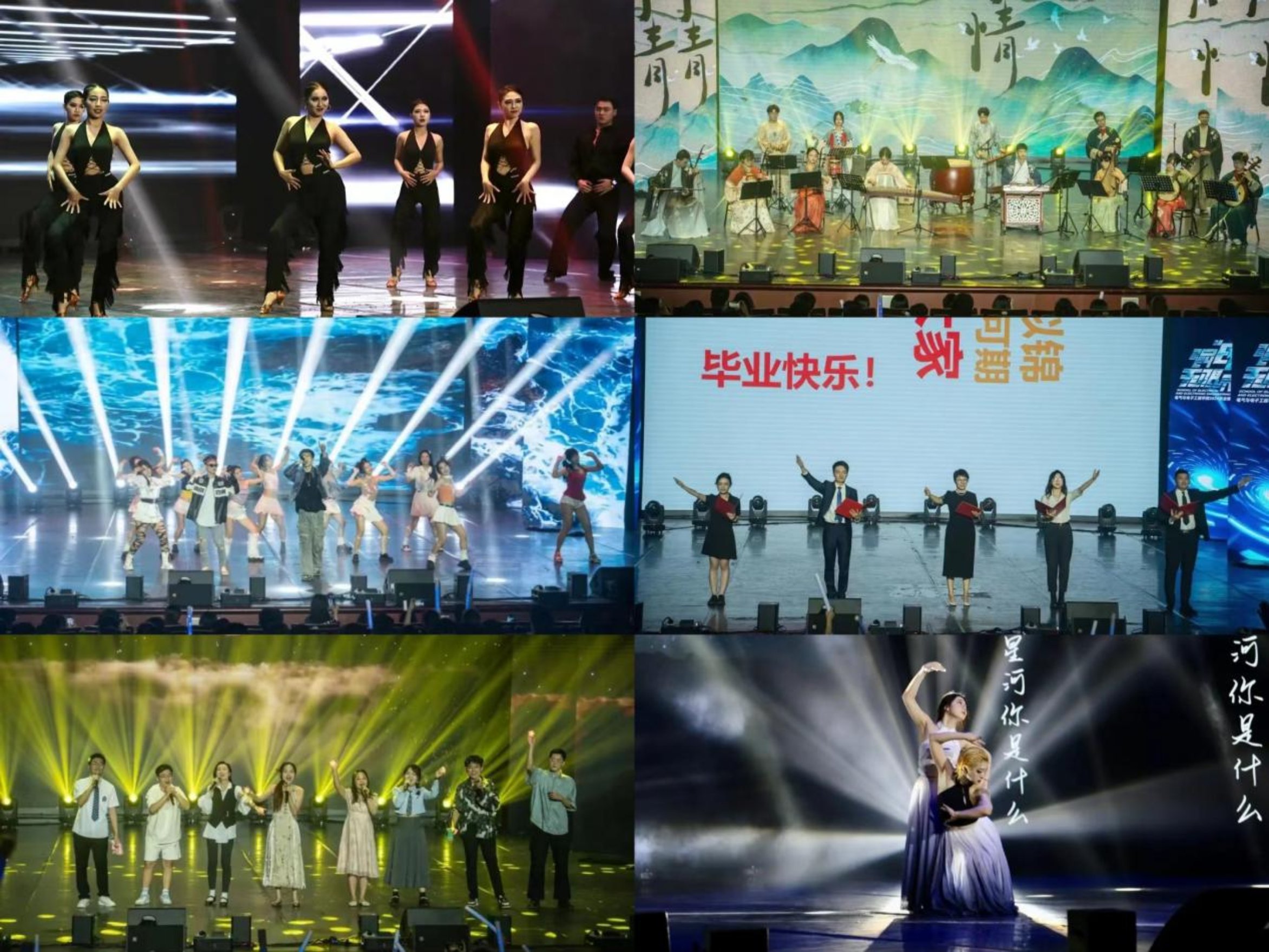 教工舞蹈协会和辅导员老师们的舞蹈将全场氛围推向热烈高潮;辅导员老师和同学们共诉《华电再会》、共唱跃入人海,最后一曲表达美好的毕业祝愿。