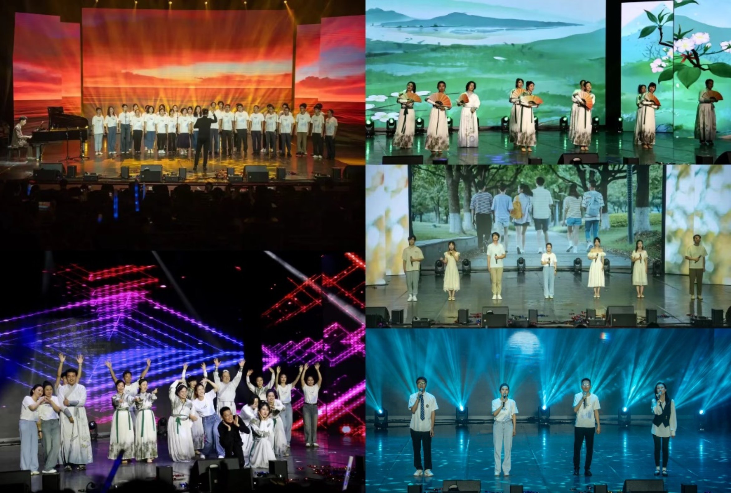 毕业61年的1963届校友金文龙先生向年轻的电院人送来自己的经验分享和毕业祝福;师生联唱表达了将坚强与希冀给未来的自己;民族管弦乐委约创作的《问情》首演,节奏明快,旋律动人心弦;唱跳节目kpop表达了乐此不疲追随日月星辰,终将实现理想;《我爱91成人