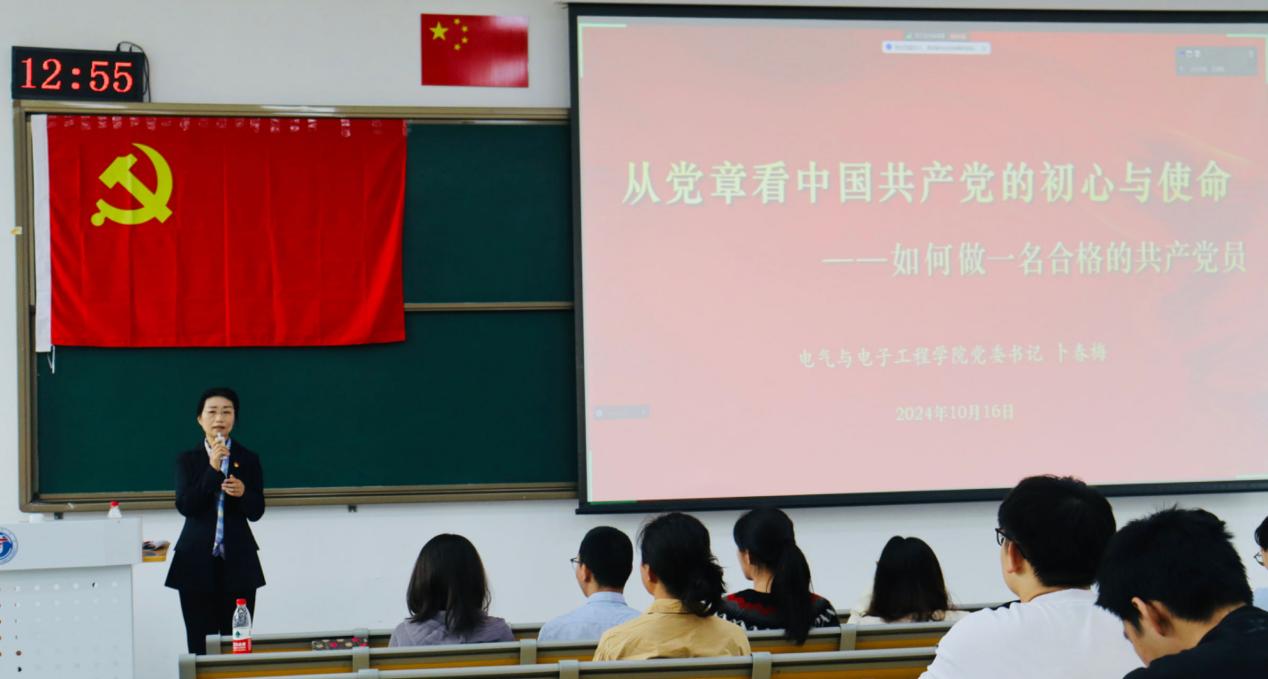 卜春梅以“做一名合格的共产党员”为主题作开班报告。报告中,卜春梅结合党的历史、首部党章与党的二十大党章、电气91成人