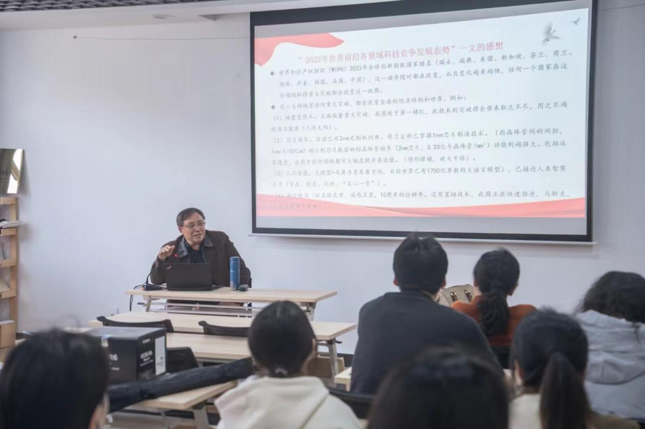 张金辉依次结合自身丰富的思政工作经验,从“深刻认识建设教育强国的重大意义”“我国建设教育强国取得的伟大成就”“教育强国,奋斗有我,让青春在全面建设社会主义现代化国家的火热实践中绽放绚丽之花”三个层面进行了生动讲解,并结合对《2022年世界前沿各领域科技竞争发展态势》一文独到的理解,穿插置身于科技浪潮迭起之中的自身经历,为双百学员带来了一场意蕴深厚的讲座。