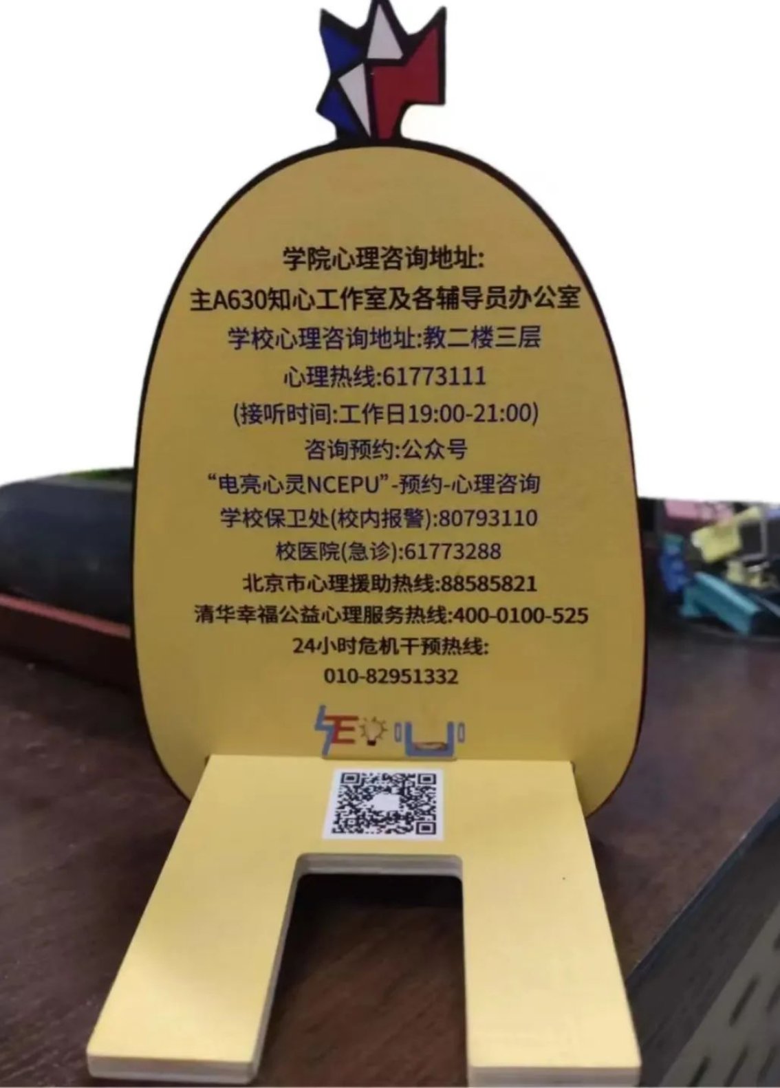 的教育理念,努力成为堪当民族复兴大任的时代新人。⽀架背面印制有心理咨询室地址方式等详细信息,这是对师生们心理健康的⼀种关怀和提醒。在面对学习、生活压力时,希望⼤家能够及时寻求⼼理帮助,保持⾝心健康。小电鸡手机支架采用木质环保材料制作,既符合环保理念,也体现了91成人