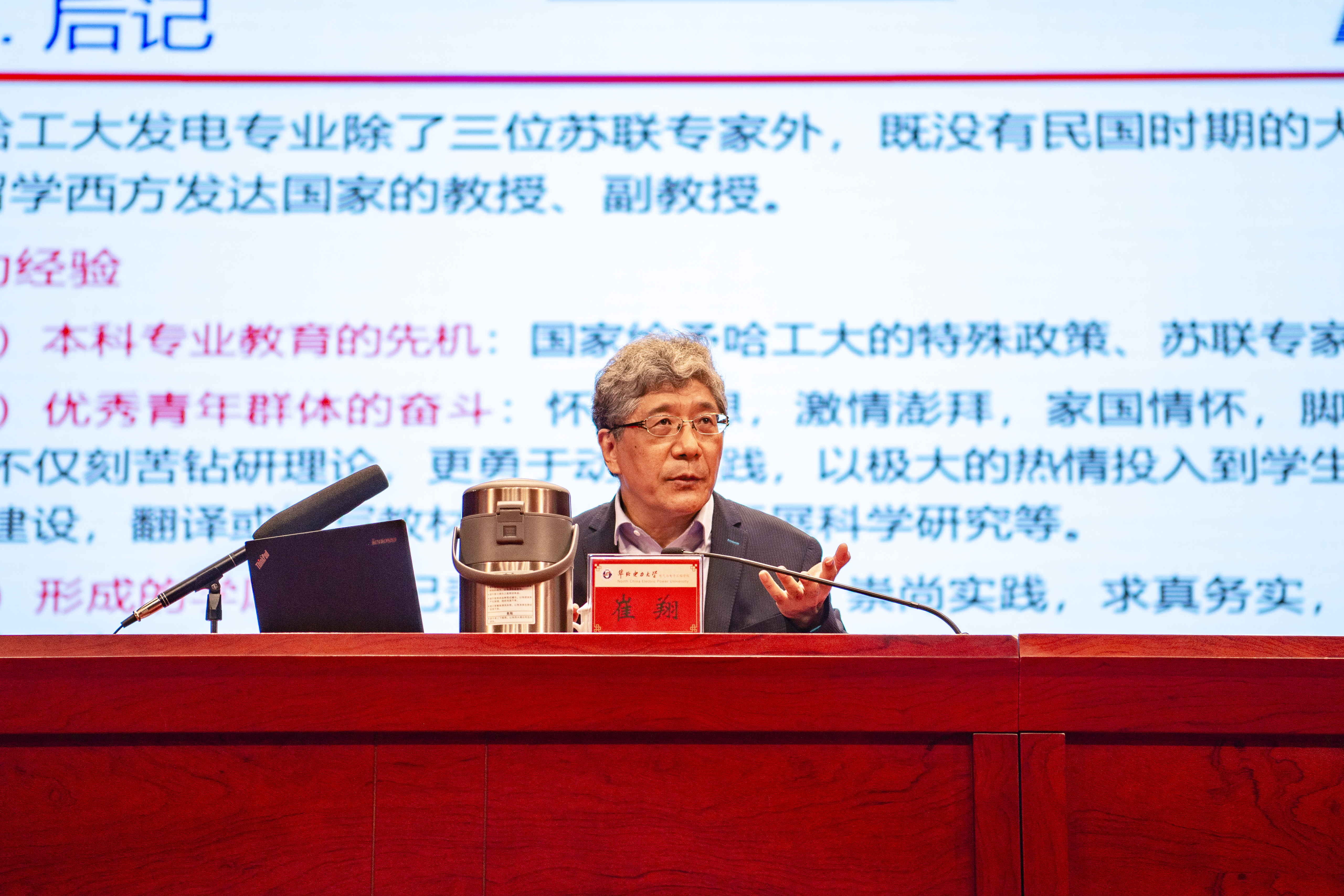 ,报效祖国;要增加民族自豪感,自信心,像我们电力行业的开拓者们一样,争取成为一个德才兼备、知行唯实的人”。
