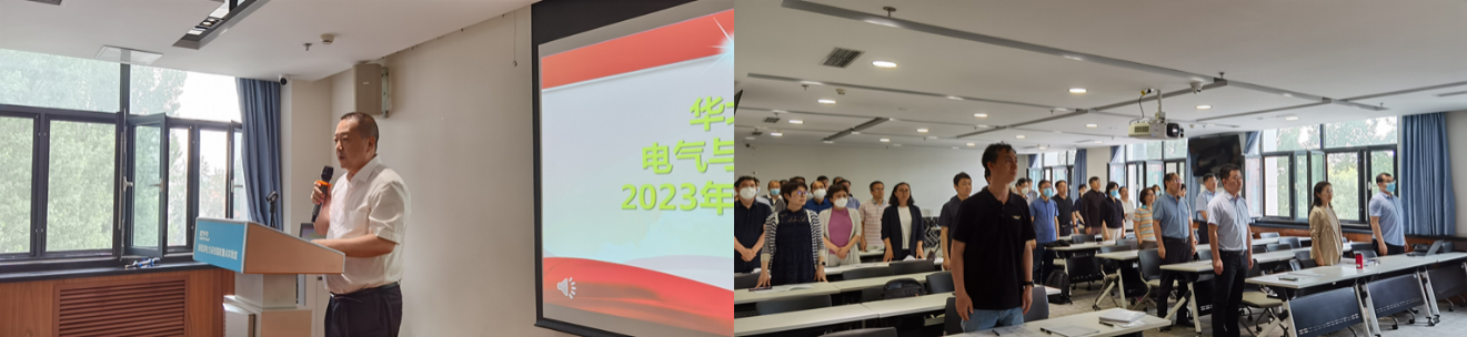 教职工代表大会开幕,与会人员全体起立,奏唱国歌。