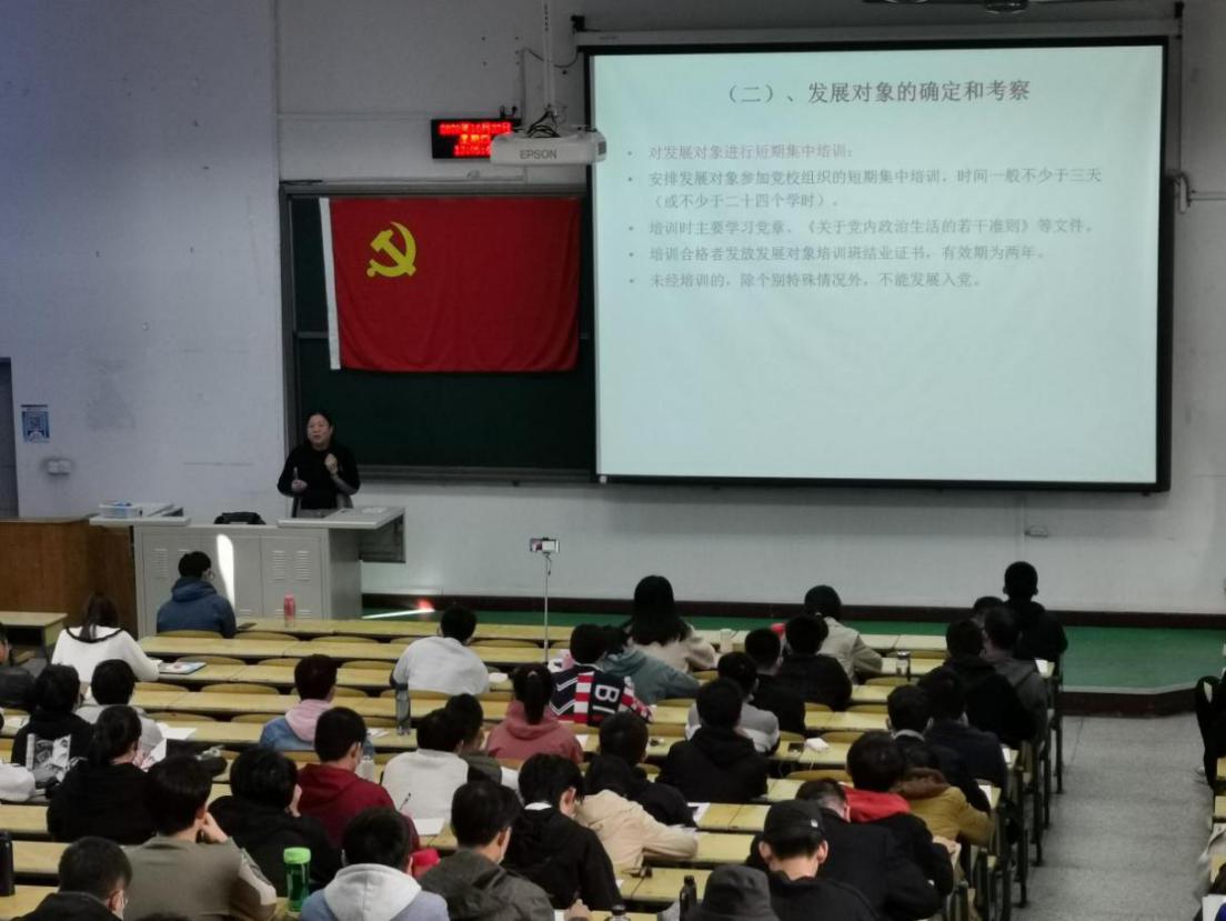 辅导员王倩老师为同学们讲授了入党的程序与规定,用生动的案例诠释了入党的神圣和庄严,加强学员们对党的基本知识的学习,让大家对入党的程序和规定有了清晰明确的认识鼓励同学们提高自身的党性修养和思想觉悟,进一步学习党的理论知识,不断向一名合格的共产党员迈进。