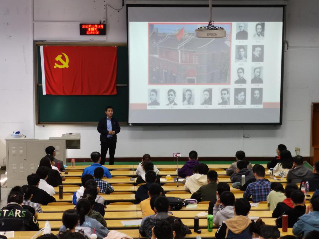 党委副书记王硕老师就党的理论知识方面进行了详细阐述,总结了十九大党章中的新思想、新论断、新概念,鼓励同学们深入学习贯彻党的十九大精神,不忘初心、牢记使命,努力为中华民族伟大复兴的中国梦贡献自己的力量。