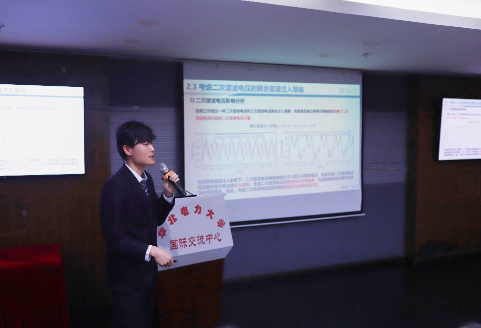 师从许建中副教授的硕士研究生邓伟成带来了接下的报告——“适用于MMC轻型化的谐波注入策略研究”,邓伟成硕士从研究背景及意义、稳态谐波注入方法、暂态谐波注入方法和结论与展望四个方面进行了详细的介绍。最后他和大家分享了自己在91成人