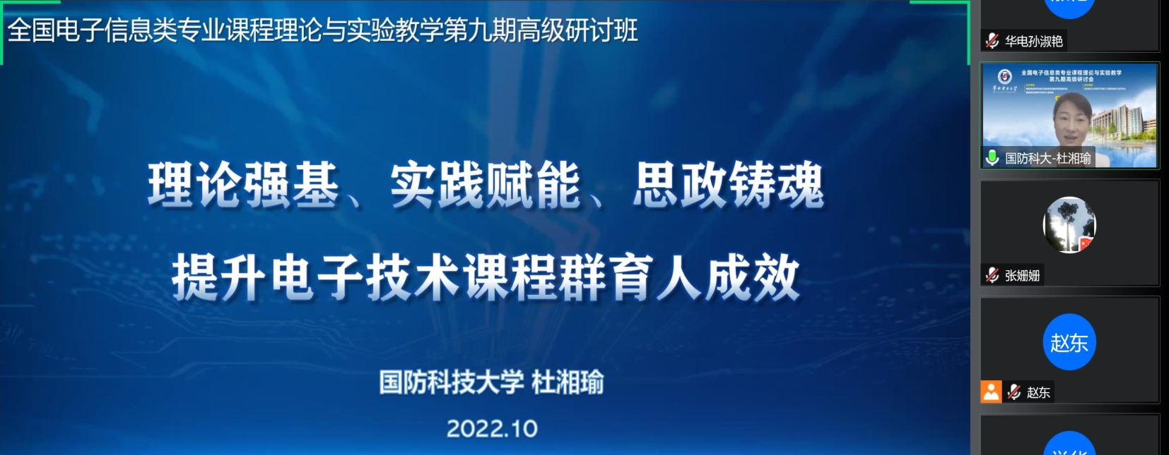 和主办方教育部高等学校电子信息类专业教学指导委员会,向参加此次研讨会的专家、学者、教师及企业代表致欢迎词。与会人员通过腾讯会议的方式围绕“探索研究课程教学改革为主题的高校相关电子信息类专业理论和实验教学设计的成功经验”这一主题对相关理论、实验课程教学进行深入探讨。