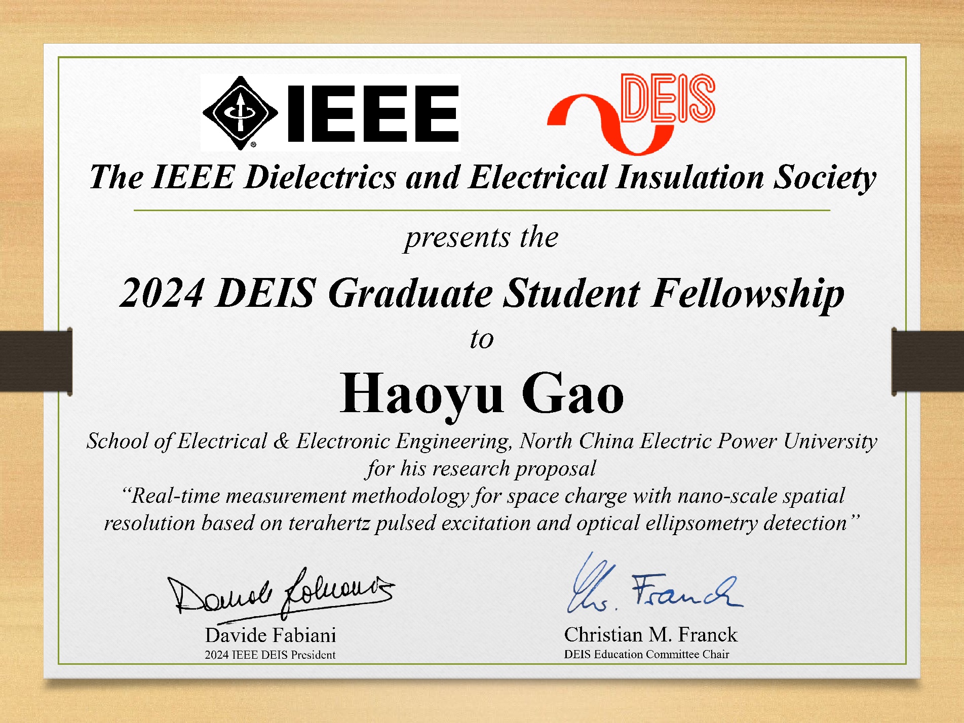 IEEE DEIS Graduate Student Fellowship 获奖证书
