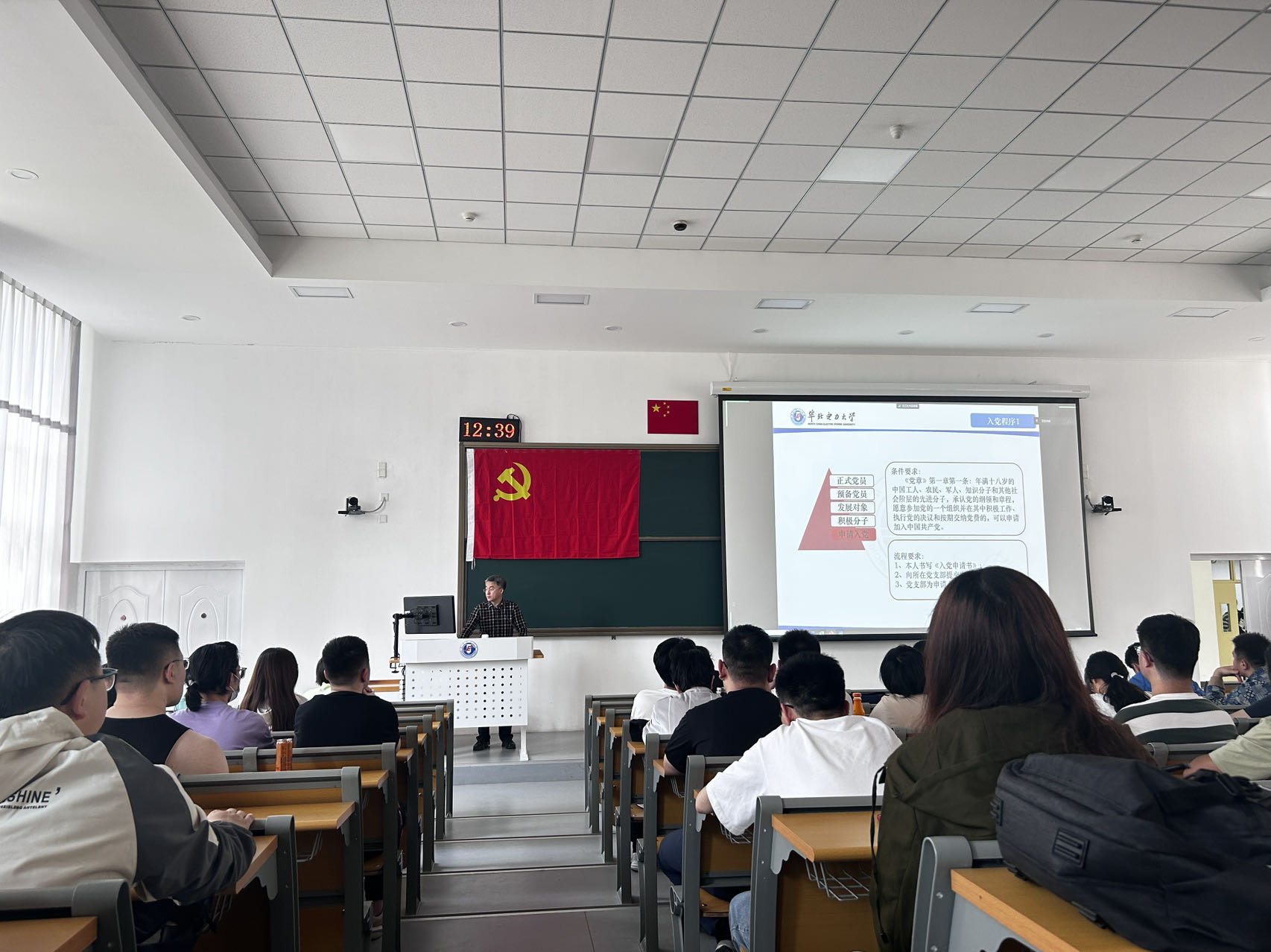 正处级组织员张宝良以“入党的规定和程序”为题,从“入党程序及要求、思想入党和组织入党、以实际行动向党组织靠拢”三方面来讲授党课,辅导员王倩参加了本次党课培训。