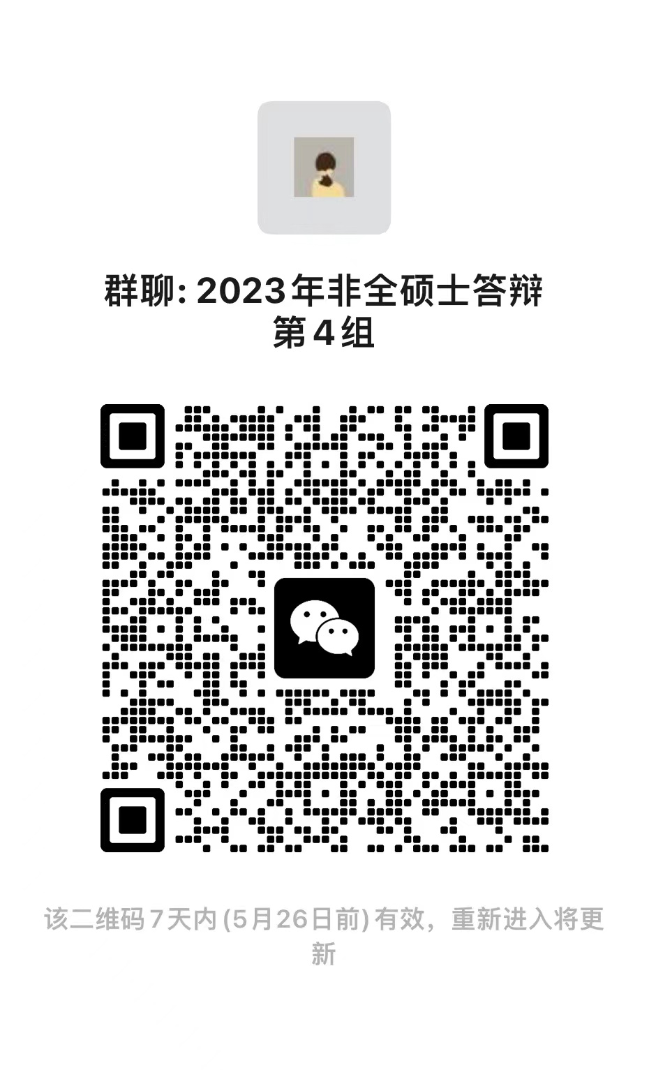 答辩秘书的联系方式如下表所示,答辩组的微信群二维码详见附件2,请大家尽快扫码入群,后续答辩前后的各项操作及相关要求,将由答辩秘书在群里进行发布,请进群后听取答辩秘书安排。